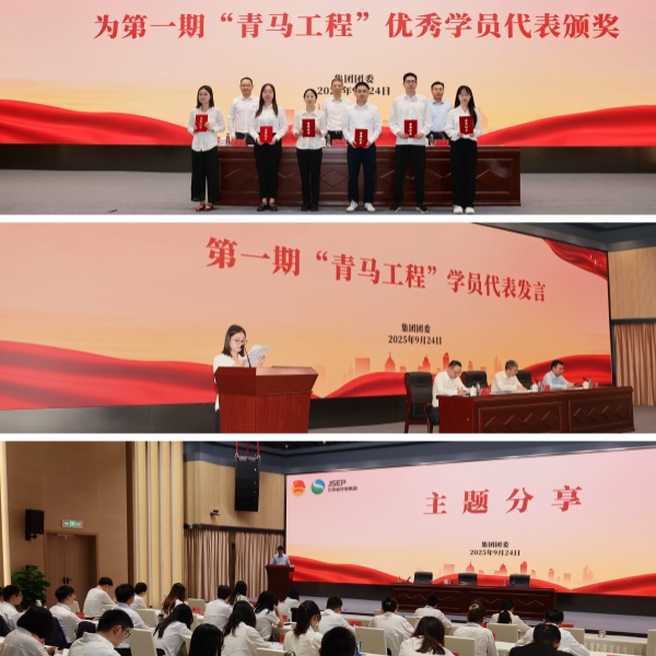 與會領導為第一期“青馬工程”優秀學員代表頒獎,優秀學員代表錢辛結合自身成長、理論學習、紅色教育、崗位實踐,就如何堅定理想信念、傳承優良作風、奮進高質量發展作了交流發言,深刻闡述青年馬克思主義者該如何將個人價值融入集團發展。工程技術公司丁亮作為省“青馬工程”國企班學員代表分享了培訓心得,勉勵學員們深刻領會“青馬工程”培訓的重要意義,在培訓過程中相互學習、彼此激勵,進一步提升理論素養和實踐水平。