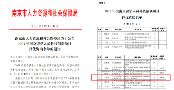 喜報丨省環(huán)境工程技術有限公司員工獲南京留學人員科技創(chuàng)新項目擇優(yōu)資助